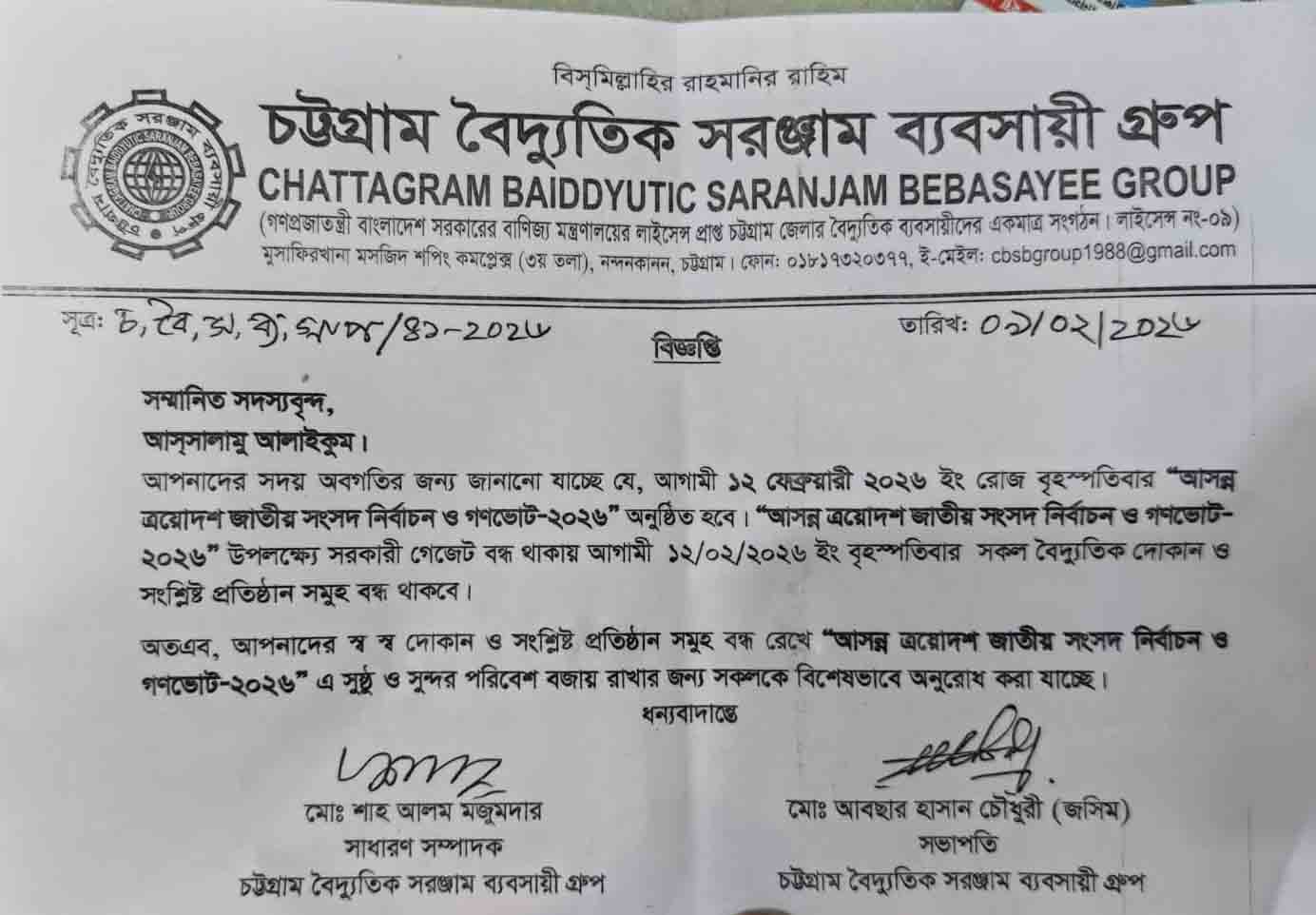 স্টাফ করেসপন্ডেন্ট : ত্রয়োদশ জাতীয় সংসদ নির্বাচন ও গণভোট উপলক্ষে চট্টগ্রাম মেট্টোপলিটন এলাকায় নির্দিষ্ট সময়ের