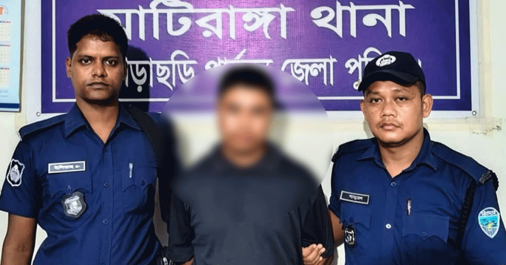 খাগড়াছড়ি প্রতিনিধি : খাগড়াছড়ির আলুটিলা পর্যটন এলাকায় বেড়াতে গিয়ে এক স্কুলশিক্ষিকা ধর্ষণের শিকার হয়েছেন বলে অভিযোগ উঠেছে। এ ঘটনায় লিটন ত্রিপুরা (২৪) নামের এক যুবককে গ্রেপ্তার করেছে পুলিশ।বৃহস্পতিবার (২৩ অক্টোবর) রাত সাড়ে ৮টার দিকে এ ঘটনা ঘটে। পরে ভুক্তভোগী ওই শিক্ষিকা বাদী হয়ে মাটিরাঙা থানায় মামলা করেন।