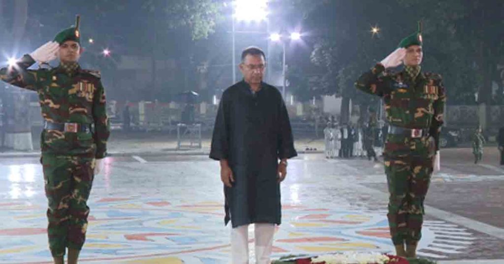 অনলাইন ডেস্ক: একুশে ফেব্রুয়ারির প্রথম প্রহরে কেন্দ্রীয় শহীদ মিনারে পুষ্পস্তবক অর্পণের মাধ্যমে ভাষা শহীদদের প্রতি গভীর শ্রদ্ধা জানান প্রধানমন্ত্রী তারেক রহমান।প্রধানমন্ত্রী হিসেবে শ্রদ্ধা নিবেদনের পর মন্ত্রিপরিষদের সদস্যদের নিয়ে আবারও শহীদ বেদিতে ফুল দেন তিনি, এ সময় তাঁর উপদেষ্টামণ্ডলীর সদস্যরাও উপস্থিত ছিলেন।এর আগে রাষ্ট্রপতি মো. সাহাবুদ্দিন প্রথমে শহীদ মিনারে পুষ্পস্তবক অর্পণ করে ভাষা শহীদদের স্মরণ করেন।প্রধানমন্ত্রীর শ্রদ্ধা নিবেদনের পর পর্যায়ক্রমে শহীদ মিনারে শ্রদ্ধা জানান সেনাবাহিনী প্রধান ওয়াকার-উজ-জামান, নৌবাহিনী প্রধান এম নাজমুল হাসান এবং বিমানবাহিনী প্রধান হাসান মাহমুদ খাঁন।