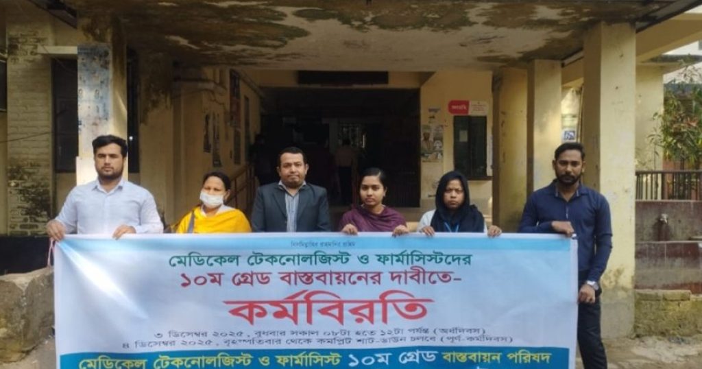 চট্টগ্রামে কর্মবিরতিতে মেডিকেল টেকনোলজিস্ট ও ফার্মাসিস্টরা