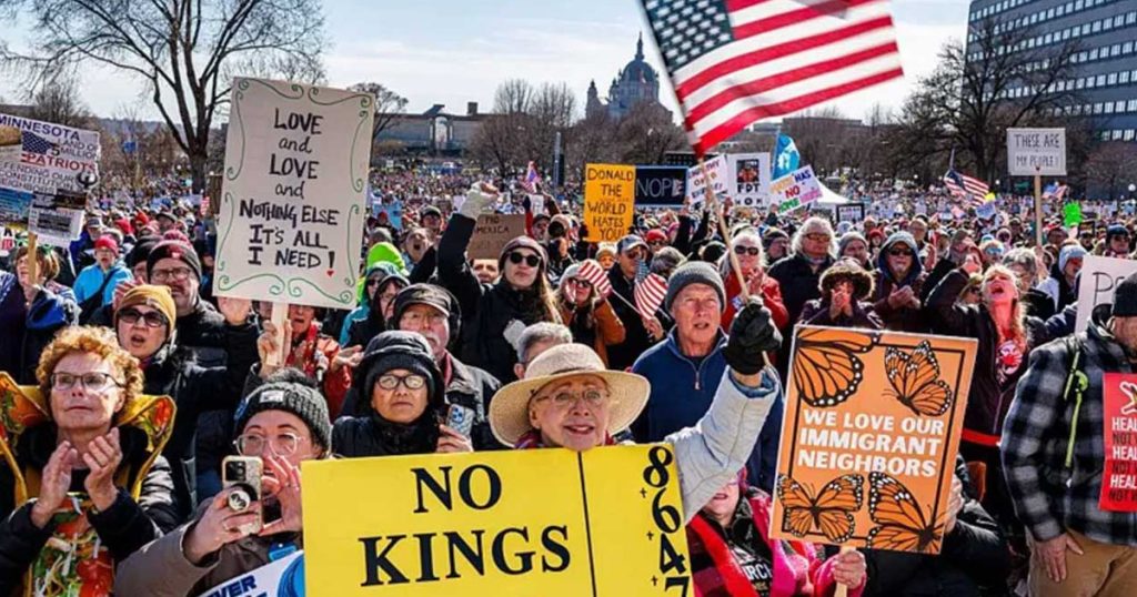 আন্তর্জাতিক ডেস্ক : ডোনাল্ড ট্রাম্প প্রশাসনের বিরুদ্ধে ফুঁসে উঠেছে যুক্তরাষ্ট্রের জনগণ। ‘নো কিংস’ র্যালিতে বিভিন্ন শহরে ব্যাপক বিক্ষোভ প্রদর্শন করেছেন দেশটির লাখ লাখ মানুষ। ইরানের রেজিম পরিবর্তনের চেষ্টায় থাকা ট্রাম্পের বিরুদ্ধে তার নিজ দেশের ‘রেজিম পরিবর্তনের’ স্লোগান উঠেছে।শনিবার (২৮ মার্চ) দিনভর নিউইয়র্ক, ওয়াশিংটন ডিসি, লস অ্যাঞ্জেলেস, বোস্টন, ন্যাশভিল এবং হিউস্টনসহ যুক্তরাষ্ট্রের প্রায় প্রতিটি প্রধান শহরে বিক্ষোভ অনুষ্ঠিত হয়েছে।বিক্ষোভকারীরা বলছেন, তারা প্রেসিডেন্ট ডোনাল্ড ট্রাম্পের চাপিয়ে দেওয়া বিভিন্ন নীতি, বিশেষ করে ইরানের সঙ্গে যুদ্ধ, কেন্দ্রীয় অভিবাসন আইন প্রয়োগ এবং জীবনযাত্রার ক্রমবর্ধমান ব্যয়ের প্রতিবাদে এই বিক্ষোভ করছেন।তারা বলেন, ট্রাম্প জনগণের ওপর একজন অত্যাচারী শাসকের মতো রাজত্ব করতে চান।