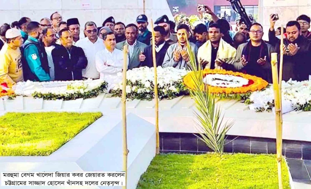 খবর বিজ্ঞপ্তি: শহীদ প্রেসিডেন্ট জিয়াউর রহমান বীর উত্তমের মাজারে রাজধানী ঢাকাস্থ শেরেবাংলা নগরের, জিয়া উদ্যান অবস্থিত সদ্য-প্রয়াত বিএনপি’র চেয়ারপারসন, সাবেক তিনবারের প্রধানমন্ত্রী দেশনেত্রী মরহুমা বেগম খালেদা জিয়ার কবর জেয়ারত এবং শোকবইতে স্বাক্ষর করলেন জিয়া স্মৃতি পাঠাগার চট্টগ্রামের-প্রচার সম্পাদক, নারী ও শিশু অধিকার ফোরাম চট্টগ্রামের সদস্য-দাপ্তরিক দায়িত্বপ্রাপ্ত সাজ্জাদ হোসেন খাঁন, ঢাকা মহানগর উত্তর জাতীয়তাবাদী ছাত্রদলের সাবেক সহ-সাংগঠনিক সম্পাদক ও পল্লবী থানা যুবদল নেতা মুহাম্মদ আরমান হোসেন সহ চট্টগ্রাম থেকে আসা বিভিন্ন শ্রেণী পেশার-রাজনৈতিক দলের নেতৃবৃন্দের অংশগ্রহণ ও উপস্থিতিতে দেখা গেছে। একেবারে অশ্রুসিক্ত চোখে ভরা টলমলে জল বুঝি দেয় যে, দেশের সার্বভৌমত্ব ও দলের নেতাকর্মীদের প্রতি মরহুমা খালেদা জিয়ার যে আবেগ ভরা ভালবাসা, যে আস্থা, যে বিশ্বাস, তিনি রেখে গেছেন, তা হয়তো স্মরণীয় হয়ে থাকবে, দল ও দেশের ক্রান্তিকালের দুঃসময়ে বিগত দিনের আন্দোলন সংগ্রাম করতে গিয়ে নির্যাতিত-নিপীড়িত- পরীক্ষিত-পালিয়ে যাওয়া স্বৈরাচারী সরকারের দমন নিপীড়নের শিকার হওয়া নেতাকর্মী থেকে শুরু করে সাধারণ সমর্থকদের কাছে আজীবন বেঁচে থাকবেন তাদের হৃদয় পিন্ডিতে বেগম খালেদা জিয়ার নাম।