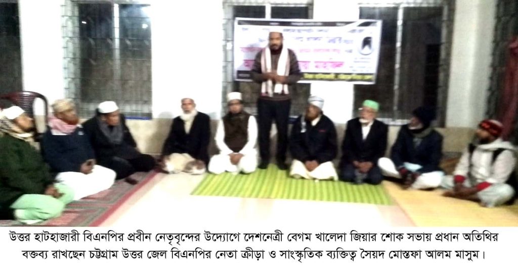 প্রবীন বিএনপি নেতা সাবেক স্বাস্থ্য কর্মকর্তা মুহাম্মদ ওবাইদুল আকবর’র সভাপতিত্বে অন্যান্যদের মধ্যে বক্তব্য রাখেন মাওলানা মুহাম্মদ শামসুল আলম, প্রবীন বিএনপি নেতা সুলতানুল আলম চৌধুরী, চট্টগ্রাম বিশ্ববিদ্যালয়ের সাবেক কর্মকর্তা হাজী মুহাম্মদ রবিউল ইসলাম, বিএনপি নেতা হাজী মুহাম্মদ আবুল বশর, প্রবীন বিএনপি নেতা মুহাম্মদ জসিম উদ্দিন, বিএনপি নেতা মুহাম্মদ নজরুল ইসলাম দুলাল, হাটহাজারী উপজেলা ওলামা দলের সভাপতি গাজী মুহাম্মদ আজিজ উদ্দিন, মুহাম্মদ সেকান্দর, মুহাম্মদ ওসমান, মুহাম্মদ রফিকুল আলম, প্রমুখ নেতৃবৃন্দ। বিএনপির চেয়ারপার্সন দেশনেত্রী বেগম খালেদা জিয়ার মৃত্যুতে দোয়া, মিলাদ মাহফিল ও বিশেষ মুনাজাতে তার আত্মার মাগফেরাত কামনা করা হয় এবং দেশের স্বাধীনতা, সার্বভৌমত্ব, গণতন্ত্র, বাকস্বাধীনতা রক্ষায় ও দেশের সামগ্রিক শান্তি কামনা করা হয়।