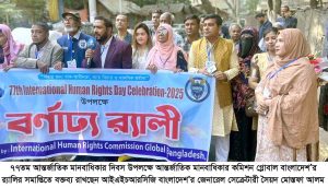 আন্তর্জাতিক মানবাধিকার কমিশন গ্লোবাল বাংলাদেশের জেনারেল সেক্রেটারী সৈয়দ মোস্তফা আলম বলেন, ৫ আগস্ট’র পর থেকে বাংলাদেশকে একটি অস্থিতিশীল রাষ্ট্রে পরিণত করার জন্য দেশী বিদেশী অশুভ চক্রান্ত চলছে। এ চক্রান্ত অত্যন্ত দৃঢ়তার সাথে অন্তবর্তীকালীন সরকার সহনশীল পর্যায়ে রাখার আপ্রাণ চেষ্টা চালিয়ে যাচ্ছে। দেশে একটি নির্বাচনী পরিবেশ সৃষ্টির লক্ষ্যে নির্বাচনের সাথে সংশ্লিষ্ট প্রশাসনিক কাঠামো ক্রমান্বয়ে শক্তিশালী হচ্ছে। এ অবস্থায় স্বাধীনতাকামী এবং গণতন্ত্র রক্ষার আন্দোলনকে অত্যন্ত সজাগ দৃষ্টি রেখে আগামী নির্বাচনকে সুষ্ট ও গ্রহণ যোগ্য করে তোলার জন্য রাজনৈতিক দলগুলোর ভূমিকা অত্যন্ত গুরুত্বপূর্ণ। তাই মানবাধিকার রক্ষায় রাজনৈতিক দলের নেতৃবৃন্দকে গণতান্ত্রিক এবং মানবিক হতেই হবে বলে তিনি উল্লেখ করেন। তিনি ৭৭তম আন্তর্জাতিক মানবাধিকার দিবসের র্যালিতে বক্তব্য রাখতে গিয়ে এ কথা বলেন। এসময় অন্যান্যদের মধ্যে উপস্থিত ছিলেন বাংলাদেশ আইএইচআরসিজি’র ভাইস প্রেসিডেন্ট মুহাম্মদ আমির হোসেন খান, সংগঠনের যুগ্ম সম্পাদক মাঈন উদ্দীন আহমদ, নির্বাহী পরিচালক নুরুল আবসার তৌহিদ, সংঠনের নারী ও শিশু বিষয়ক সম্পাদিকা তাহেরা শারমীন, চট্টগ্রাম বিভাগীয় সমন্বয়কারী মুহাম্মদ আওরঙ্গজেব খান সম্রাট, কেন্দ্রীয় নেতা ইঞ্জিনিয়ার আবু তৈয়ব, মোঃ আব্দুর রহিম, পটিয়া উপজেলার সাবেক মহিলা ভাইস চেয়ারম্যান নারী নেত্রী আফরোজা বেগম জলি, নেত্রী নাহিদা আক্তার নাজু, চম্পা রানী নন্দী, চট্টগ্রাম উত্তর জেলার সাধারণ সম্পাদক মোঃ ইউনুচ তালুকদার, চট্টগ্রাম দক্ষিণ জেলার সাধারণ সম্পাদক চৌধুরী ওহাব, চট্টগ্রাম মহানগর কমিটির যুগ্ম সমন্বয়কারী ডা. জামাল উদ্দিন, আর্ন্তাতিক ইসলামী বিশ্ববিদ্যালয়ের সভাপতি মোঃ মোশারফ হোসেন, সীতাকুন্ড উপজেলার সভাপতি মোঃ মুসলিম উদ্দিন ভূইয়া, মহানগরের যুগ্ম সমন্বয়কারী জাবেদ চৌধুরী, সংগঠনের নারী নেত্রী জান্নাতুল মাওয়া মারুফা, শারমীন সরকার, জোহরা সেলিম, সীতাকুন্ড পৌরসভার সাবেক কাউন্সিলর মাসুদা বেগম, নারী উদ্যোক্তা মনিরা দিলশাদ তানসি, সংগঠনের নেতা যথাক্রমে-হাজী নুরুল ইসলাম, তাহেরা মহরম, ফাহমিনা আলম, ইঞ্জি: কাজী মিজান, এনাম হোসেন, মোঃ আলাউদ্দিন, আব্দুল কাদের চৌধুরী, মোঃ ইয়াছিন, মোঃ রাজু চৌধুরী, তৌহিদুল আলম তালুদার, মোঃ ইকরাম, ইব্রাহিম লালন, সঙ্গীত শিল্পী এস.বি সুমি, মোঃ ইমাম উদ্দিন, মোঃ আজহারুল ইসলাম তামিম, শান্ত দে, ফয়জুল হক, আসিফ রোহান, মোঃ ইয়াছিন প্রিন্স, তাহমিনা আক্তার প্রমুখ।
