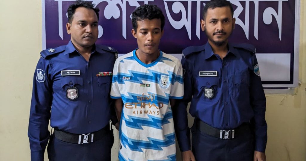 শনিবার (১৩ ডিসেম্বর) বিকাল সাড়ে ৫টায় উপজেলার জোরারগঞ্জ থানাধীন তাজপুর এলাকা থেকে তাকে গ্রেপ্তার করা হয়।রবিবার (১৪ ডিসেম্বর) দুপুর ১২টায় জোরারগঞ্জ থানার ভারপ্রাপ্ত কর্মকর্তা (ওসি) কাজী নাজমুল হক এ তথ্য জানান।