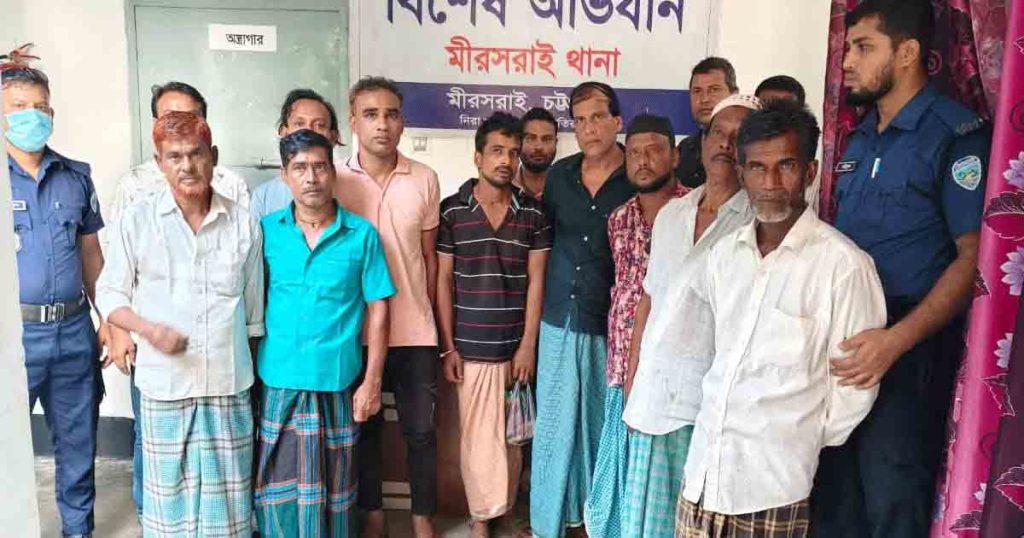 মিরসরাই প্রতিনিধি: মিরসরাই থানা পুলিশের অভিযানে হত্যা, চুরি, মাদক ও জুয়া মামলার ১৩ জন আসামিকে গ্রেপ্তার করেছে পুলিশ। শুক্রবার (১৭ অক্টোবর) গভীর রাত থেকে শনিবার (১৮ অক্টোবর) সকাল পর্যন্ত উপজেলার বিভিন্ন এলাকায় অভিযান চালিয়ে তাদের গ্রেফতার করা হয়।গ্রেফতাররাহলেন—হত্যা মামলার আসামি কুমিল্লা জেলার ব্রাহ্মণপাড়া থানার শিদলাই ইউনিয়নের লাডুচো গ্রামের সরফাত আলীর ছেলে আলমগীর হোসেন (৩৩) চুরি মামলায় খৈয়াছড়া ইউনিয়নের পশ্চিম খৈয়াছড়া গ্রামের শামসুল আলমের ছেলে একরামুল হক (২৮); তার বিরুদ্ধে থানায় ১০টি মামলা রয়েছে।