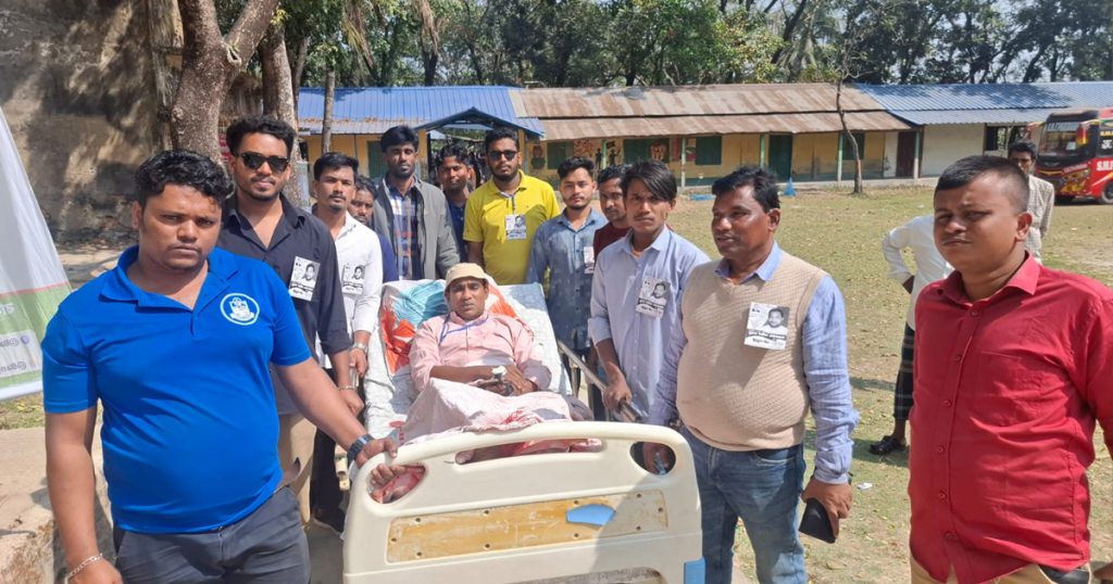 মিরসরাই প্রতিনিধি : ত্রয়োদশ জাতীয় সংসদ নির্বাচনে চট্টগ্রাম-১ মিরসরাই আসনে হাসপাতালের বেডে শুয়ে ভোট দিলেন কামরুল হাসান বাপ্পি নামের এক ভোটার। তিনি বৃহস্পতিবার দুপুরে উপজেলার মলিয়াইশ উচ্চ বিদ্যালয় কেন্দ্রে তিনি ভোটাধিকার প্রয়োগ করেছেন। অনেকের সাহায্য নিয়ে ভোটাধিকার প্রয়োগ করেন তিনি। বাপ্পি মিঠানালা ইউনিয়ন যুবদলের সদস্য সচিবের দায়িত্বে রয়েছেন। খোঁজ নিয়ে জানা গেছে, কিছুদিন পূর্বে মোটরসাইকেল দুর্ঘটনায় গুরুত্বর আহত হয়ে হাসাপতালে ভর্তি হয়েছেন। কিন্তু ভোটাধিকার থেকে নিজেকে বঞ্চিত না করতে ভোট দিতে আসেন। এ বিষয়ে কামরুল হাসান বাপ্পি বলেন, আমি হাসপাতালের বেড শুয়ে থাকলেও মন পড়ে ভোটের মাঠে রয়েছে। অনেকে নিষেধ করলেও আমার মন মানছেনা। তাই বেড নিয়ে এসে ভোট দিয়েছি। ধানের শীষের জয় হবে ইনশাআল্লাহ।