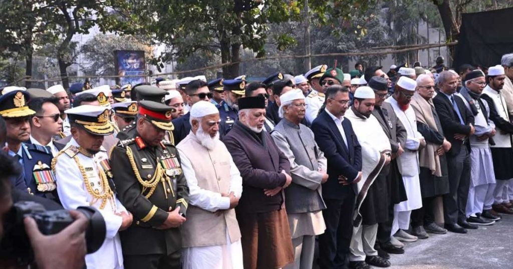 এর আগে গুলশানের বাসভবন ‘ফিরোজা’ থেকে রাষ্ট্রীয় মর্যাদায় খালেদা জিয়ার মরদেহ মানিক মিয়া অ্যাভিনিউয়ে আনা হয়। সকাল থেকেই জাতীয় সংসদ ভবনসংলগ্ন এলাকায় জড়ো হতে থাকেন শোকার্ত মানুষ। সময় গড়ানোর সঙ্গে সঙ্গে মানুষের স্রোত রূপ নেয় জনসমুদ্রে। কারও হাতে কালো ব্যাজ, কারও চোখে অশ্রু—সবার বুকে একই শোক, দেশের গণতান্ত্রিক রাজনীতির এক আপসহীন নেত্রীকে হারানোর বেদনা।