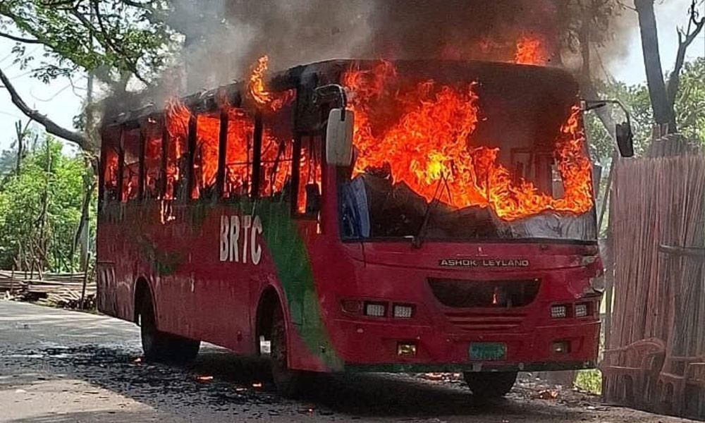 ধোঁয়া দেখে যাত্রীদের চিৎকার, একটু পরেই আগুনে পুড়ল বাস