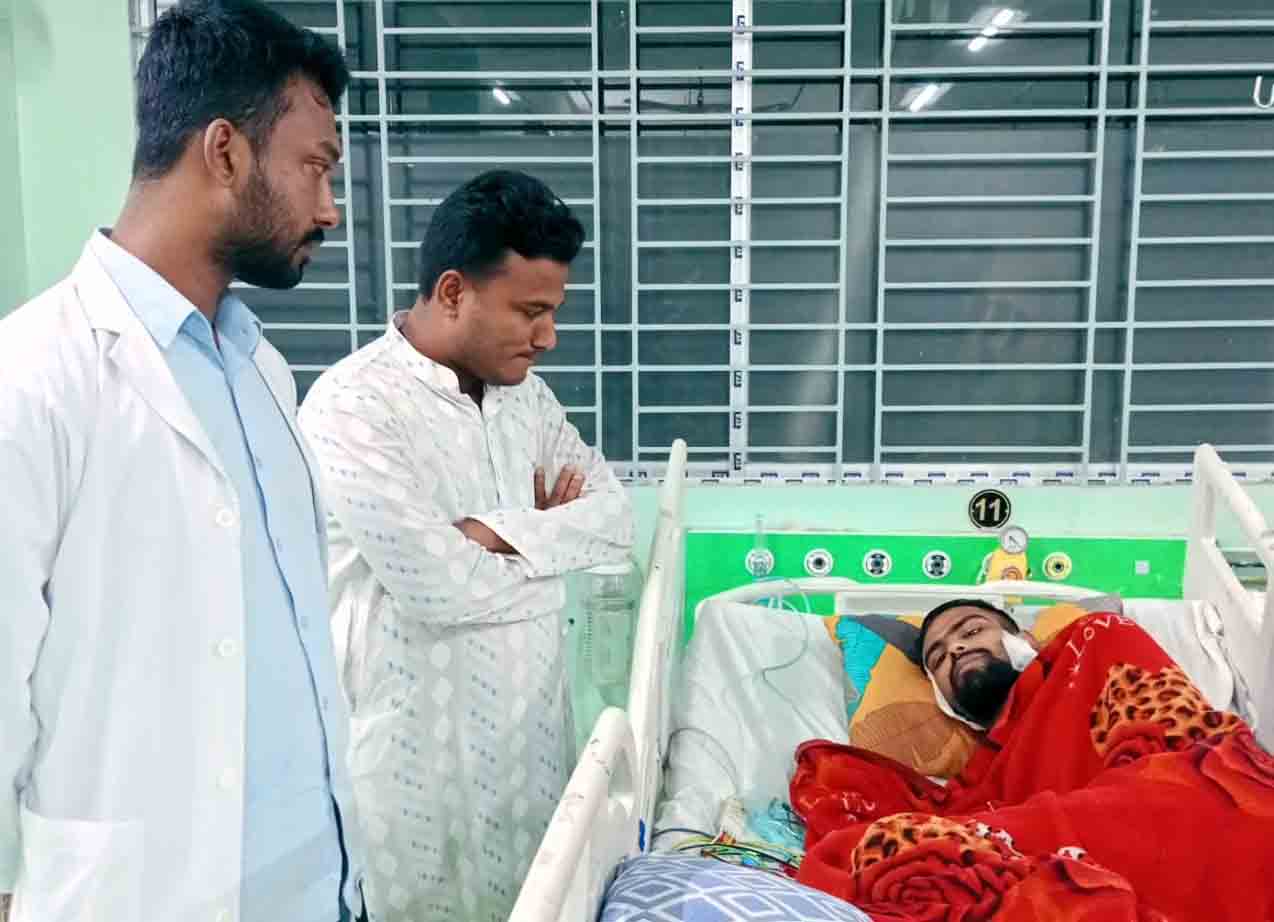 এরশাদ উল্লাহর নির্বাচনী গণসংযোগে গুলিবিদ্ধ এরফানুল হক শান্তর শয্যাপাশে নেতৃবৃন্দ