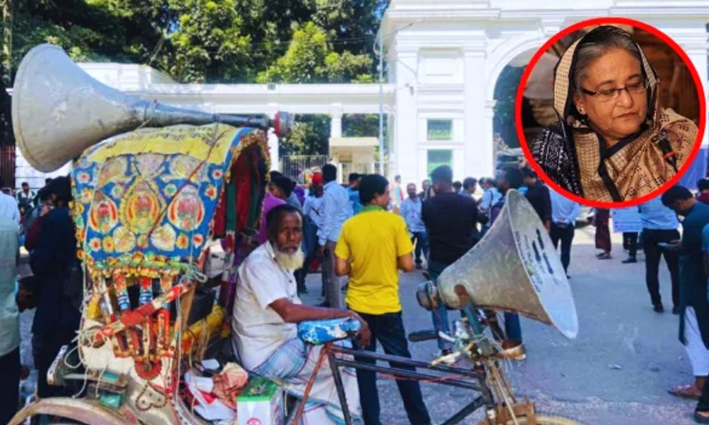 শেখ হাসিনার সন্ধানে হারানো বিজ্ঞপ্তির মাইকিং