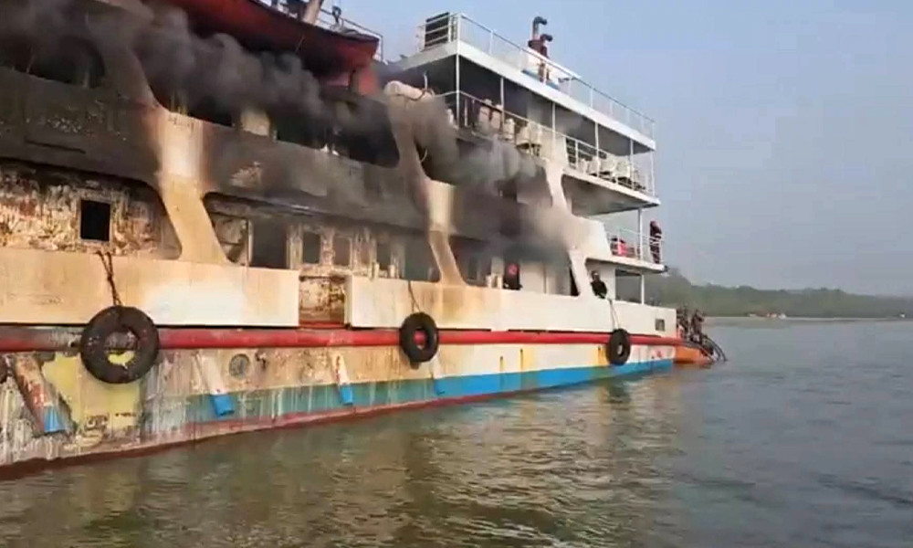 সেন্ট মার্টিনগামী জাহাজে আগুন, ঘুমন্ত কর্মীর মৃত্যু