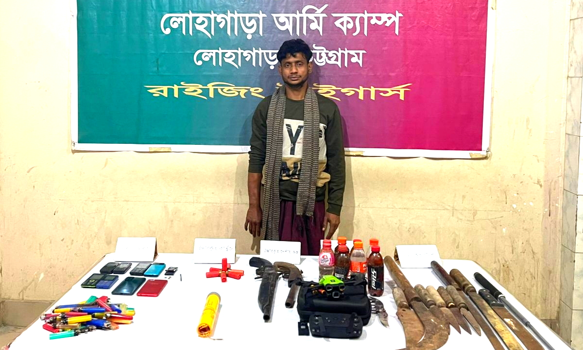 লোহাগাড়ায় যৌথবাহিনীর অভিযানে অস্ত্র-ড্রোন-মদসহ যুবক গ্রেপ্তার