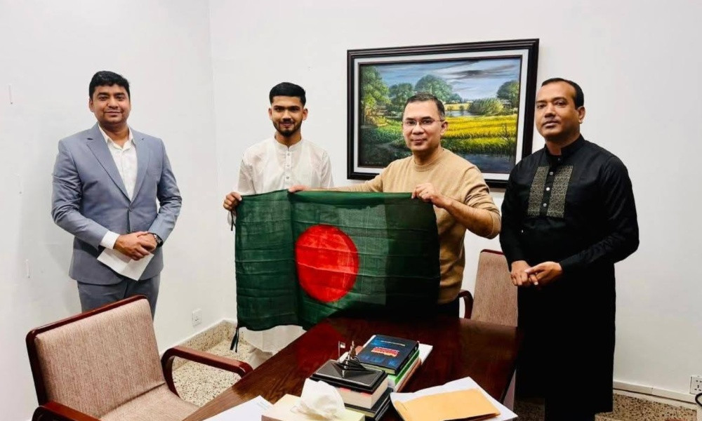 জুলাই আন্দোলনে মুত্তাকিনের ওড়ানো সেই পতাকা তারেক রহমানকে উপহার