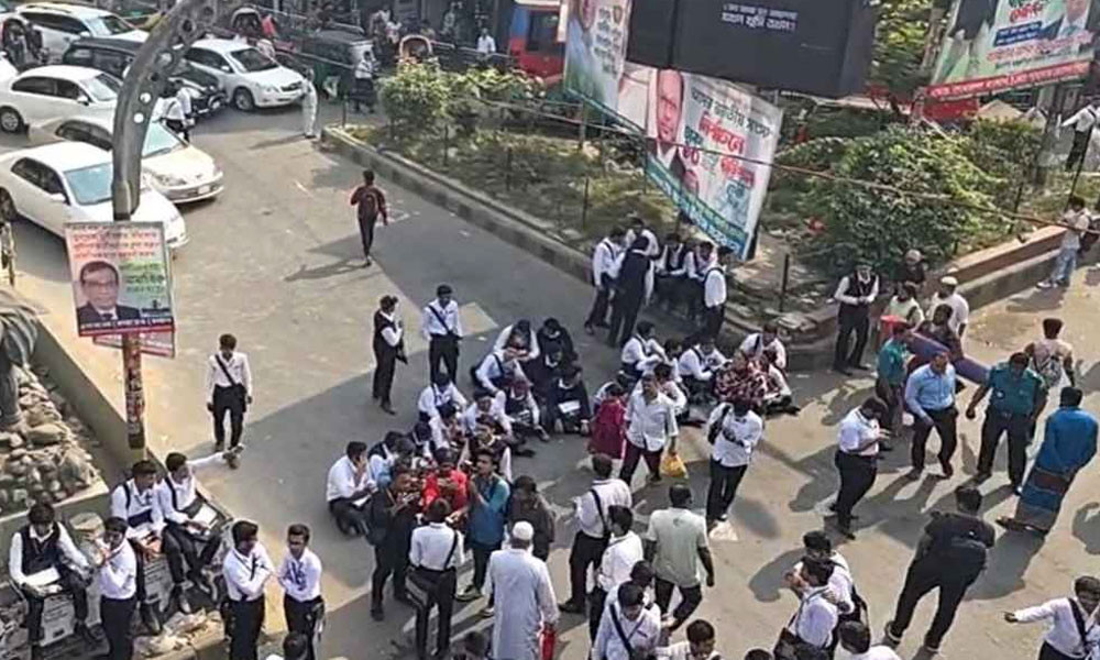 সায়েন্সল্যাবে ঢাকা কলেজের উচ্চমাধ্যমিকের শিক্ষার্থীদের অবরোধ