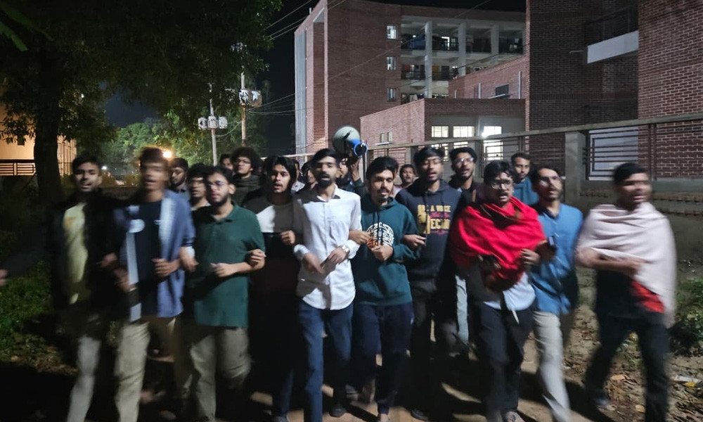 চুয়েটে মধ্যরাতে বিক্ষোভ মিছিল, শেখ হাসিনার কুশপুত্তলিকা দাহ