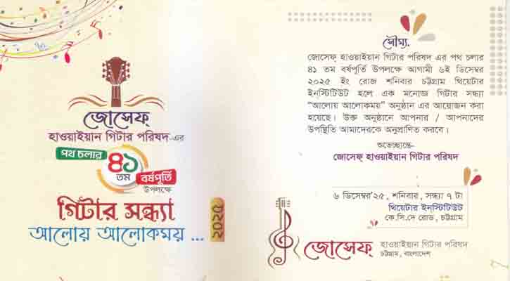 থিয়েটার ইনস্টিটিউটে গিটার সন্ধ্যা “আলোয় আলোকময়” আগামী শনিবার
